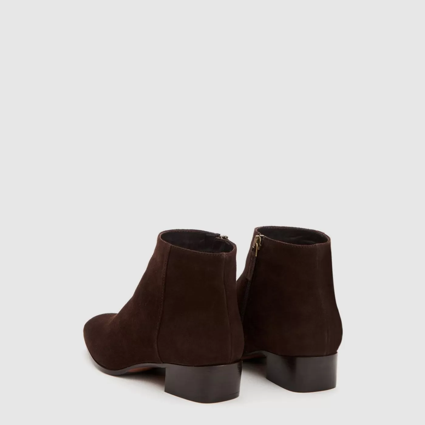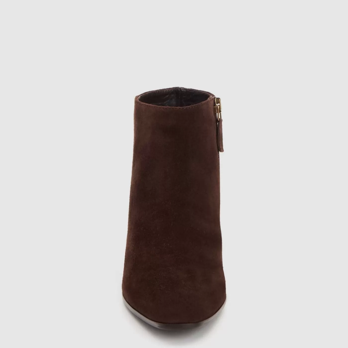 Pointy Toe Suede Bootie With An Inside Zip On A Stacked Heel. Now Available In Wide Widths.